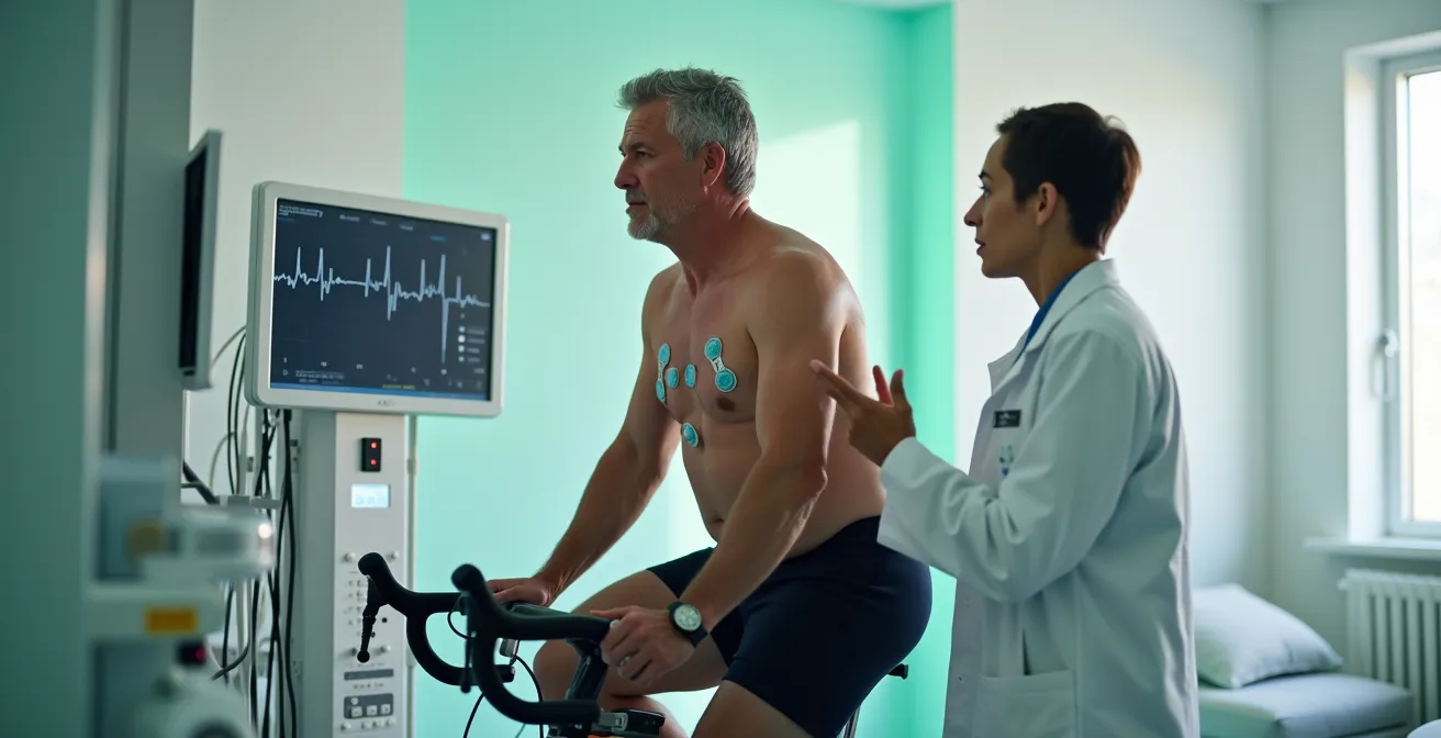 Die entscheidende Wahrheit über Ihr Herz zeigt sich oft erst unter gezieltem Stress, weil ein Ruhe-EKG nur eine trügerische Momentaufnahme ist – eine elektrische Fassade, die eine beginnende Sauerstoffschuld des Herzmuskels nicht aufdecken kann.